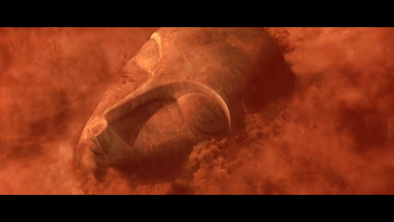 a. Vue depuis le sol martien avec ses deux satellites dans le ciel au début du film